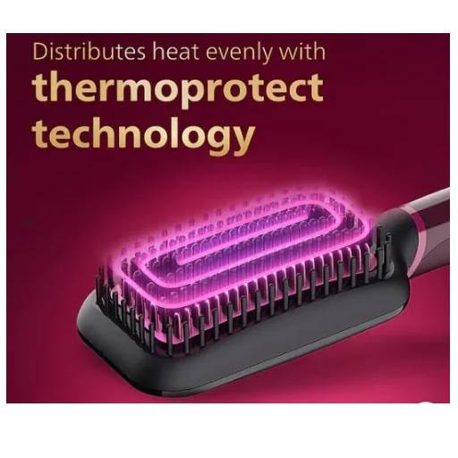 ThermoProtect technology: ThermoProtect technology maintains constant temperature across the brush to prevent overheating for protected, healthy looking hair.