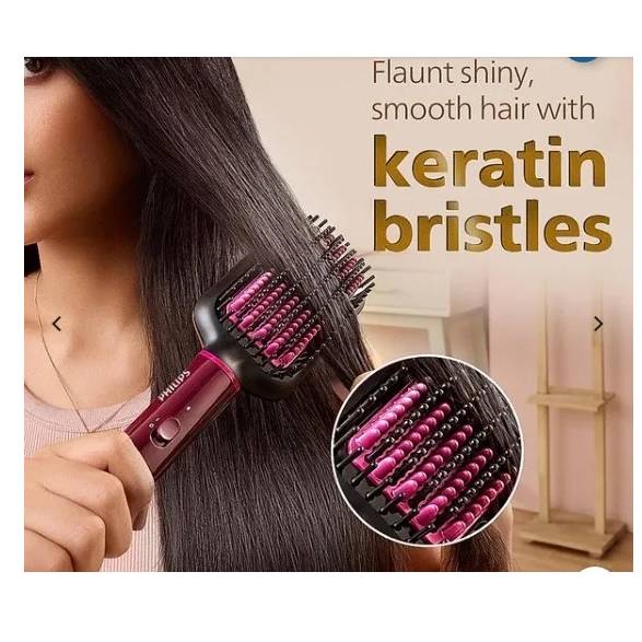 Keratin infused ceramic coating: The bristles with keratin infused ceramic coating glide smoothly through your hair for naturally straight and shiny look.\