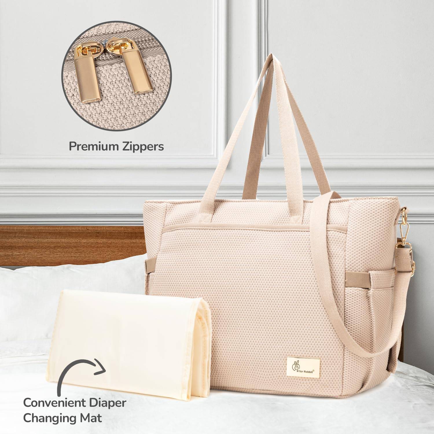 R For Rabbit Caramello Tote Diaper Bag With Personalized Name Tag, Beige - DBCMTB09