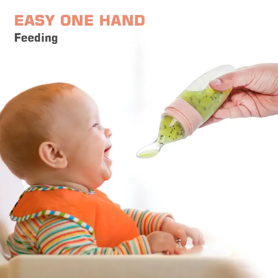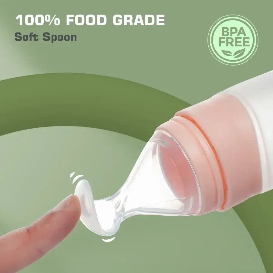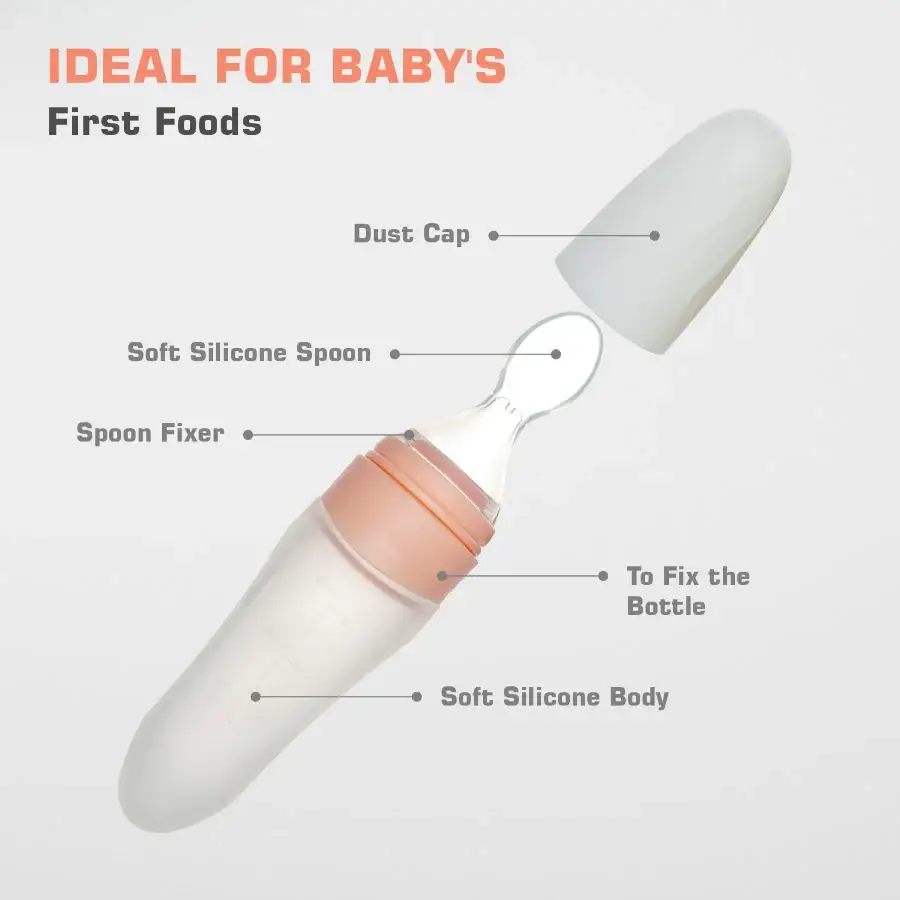 Soft Spoon: Baby feeder comes with soft silicone feeder which makes it easy to intake the food/liquid and will not hurt the baby’s gums