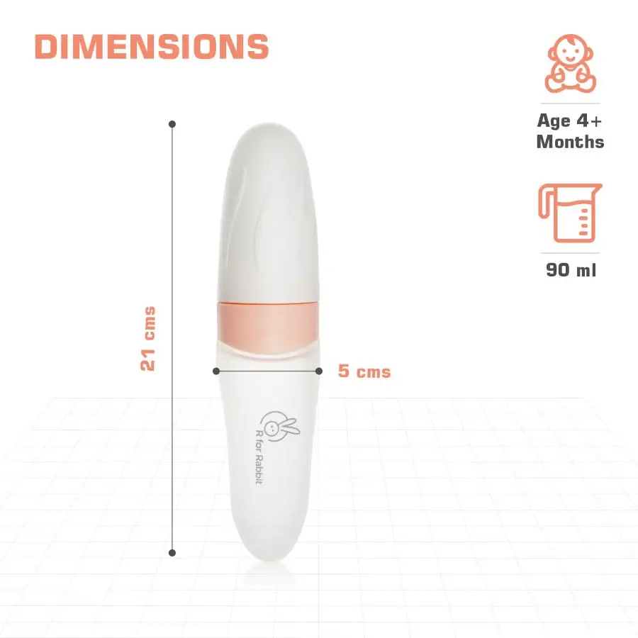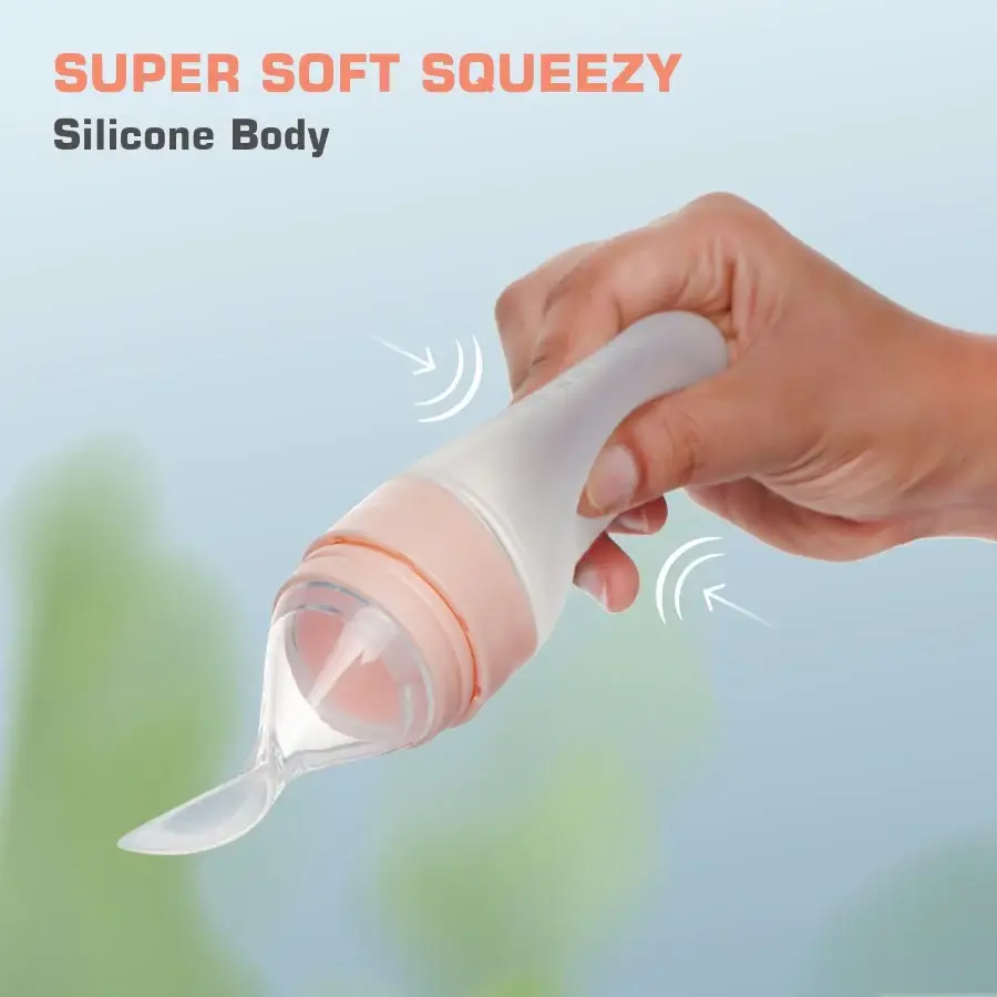 Easy To Use: First Feed Feeder can be used by simply holding it with one hand and pressing the soft silicone container to bring food on the spoon and feed the baby.
