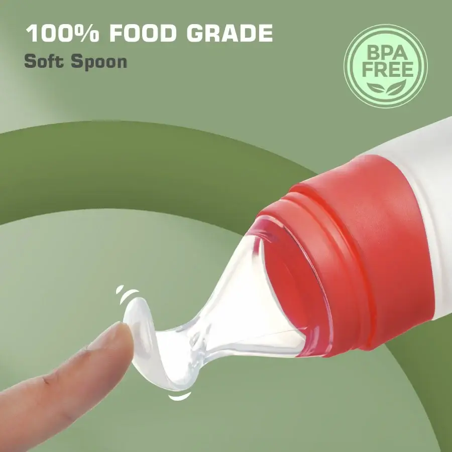 Soft Spoon: Baby feeder comes with soft silicone feeder which makes it easy to intake the food/liquid and will not hurt the baby’s gums