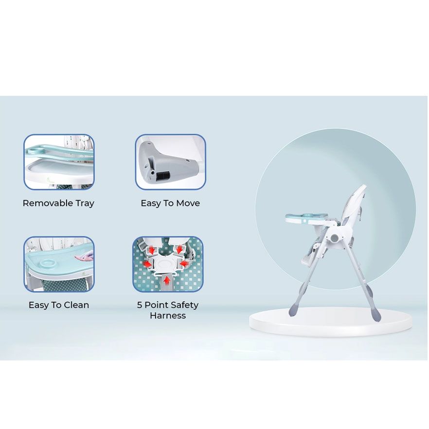 6-Level Height Adjustment : This baby high chair grows with baby and can be adjusted as per baby’s comfort up to 6 different levels of height.