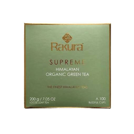 The magic of this ultimate blend of Himalayan organic green tea, will surprise you with its fruity aroma and mellow flavour; sipping on it will rouse a soothing goodness that takes over the pressures on your body. Whats more, high grown green teas exhibit numerous health benefits too.With over 40 years of passion behind Rakura, you will know the finest teas are handpicked, perfected and fastidiously packed at source within moments for this Supreme pack to bring you the freshest cup that promises a relaxing aroma and the goodness of beautiful tea, to caress your senses and your body.