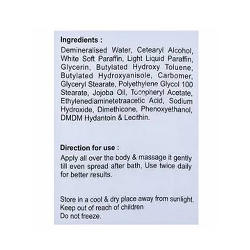 Composition: Demineralised Water, Cetearyl Alcohol, White Soft Paraffin, Light Liquid Paraffin, Glycerin, Butylated Hydroxy Toluene, Butylated Hydroxyanisole, Carbomer, Glyceryl Stearate