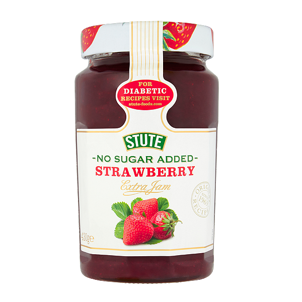 - Stute Foods’ No Sugar Added Strawberry Extra Jam is a healthier alternative to ordinary jam. It contains 90% less sugar and 30% fewer calories than regular jam.