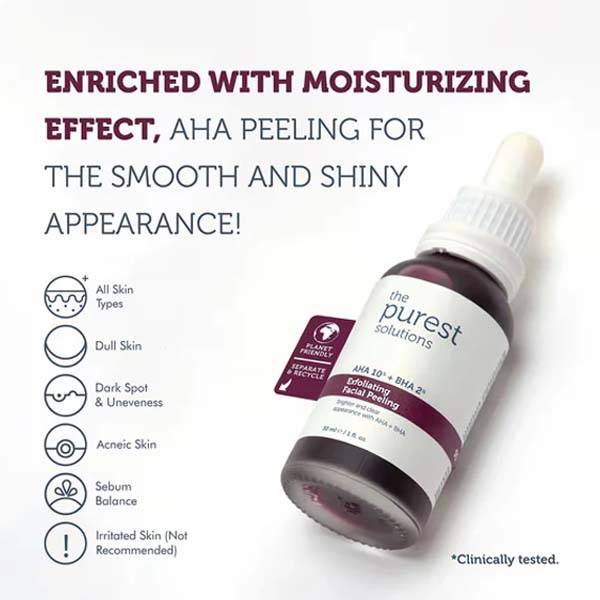 The Purest Solutions AHA 10% + BHA 2% Exfoliating Facial Peeling 30Ml