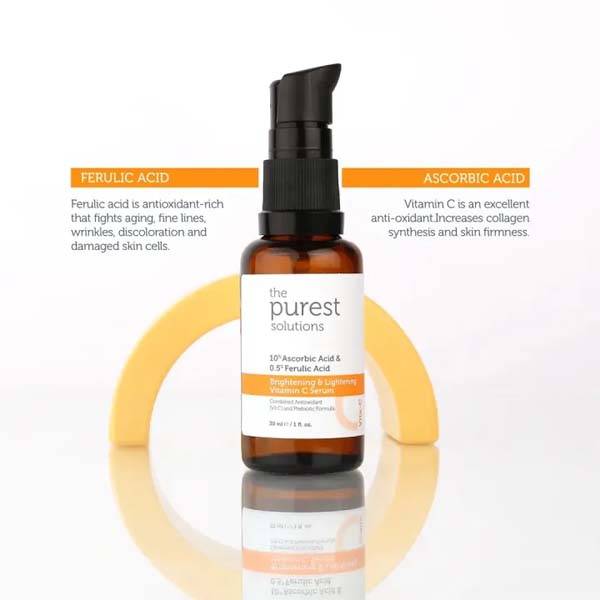 The Purest Solutions Brightening & Lightening Vitamin C Serum 10% Ascorbic acid & Ferulic Acid 0.5% 30Ml