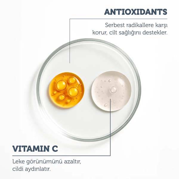 Its lightweight, antioxidant-rich formula, enriched with Vitamin C, helps even out skin tone and restore a natural glow.