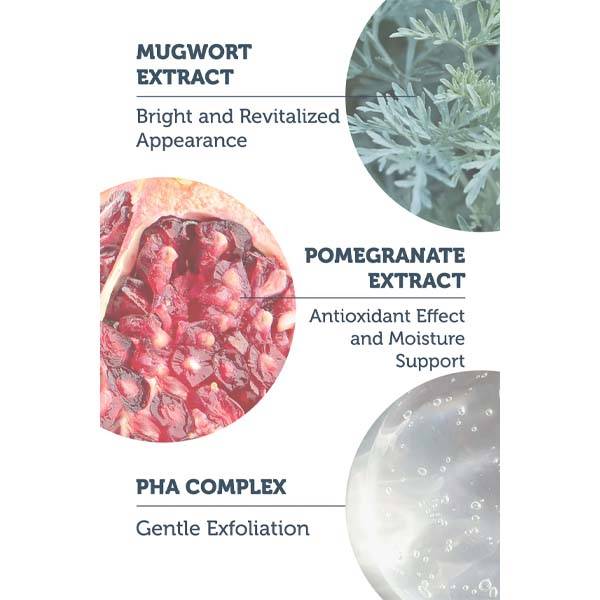 - Rich in antioxidants (Mugwort, Pomegranate) for skin protection from environmental stressors