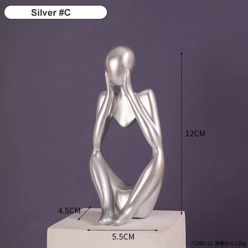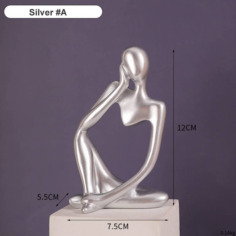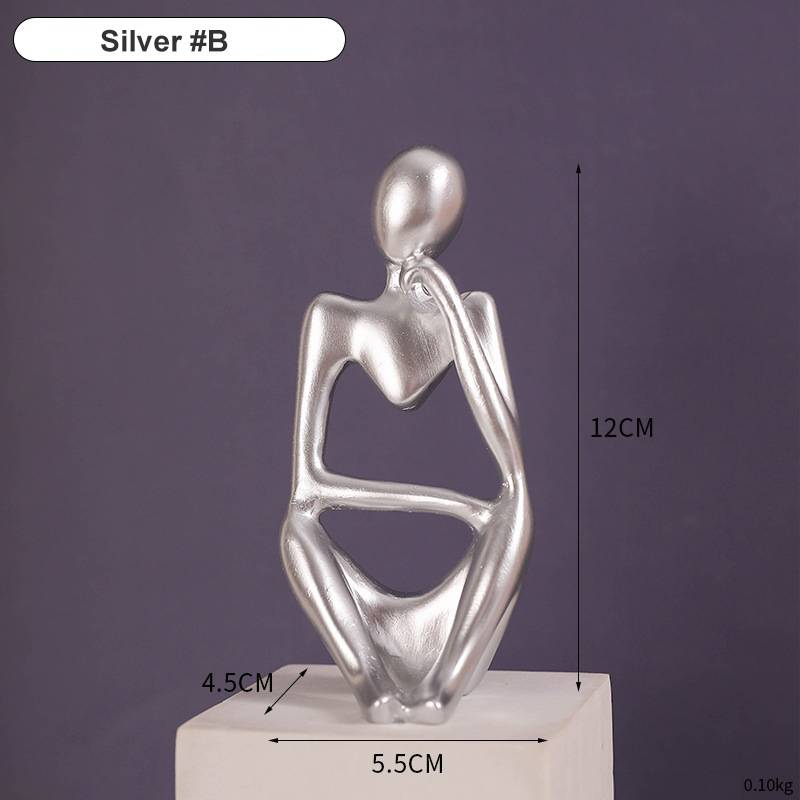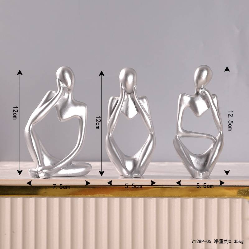 Thinker Statue Silver Decor Abstract Art Sculpture Resin 3Pcs Set & Get 1 free Crystal ball