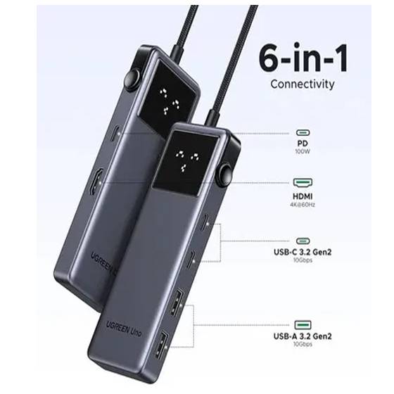 Ugreen 6 in1 Uno USB-C To HDMI+2*USB 3.2 A+2*USB 3.2 C+PD Power Converter CM888