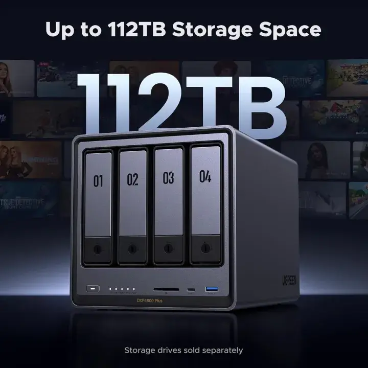 Maximum Storage: 112TB (4x 24TB + 2x 8TB)