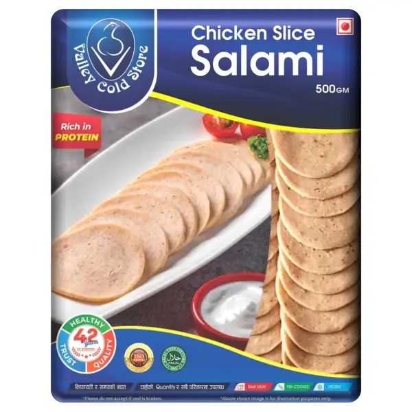 Valley Chicken Sliced Salami, presented in a convenient 500g package, offers a tantalizing poultry-based take on classic salami. Crafted from premium chicken, this thinly sliced salami delivers a flavorful and versatile option for various culinary creations.