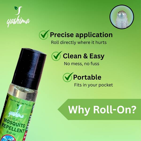 Yashima Mosquito Repellent Roll-On (10ml) is a herbal insect repellent made by Ayus Herbal Care Pvt. Ltd., offering natural, non-toxic protection against mosquitoes and insect bites. Its active ingredients include: