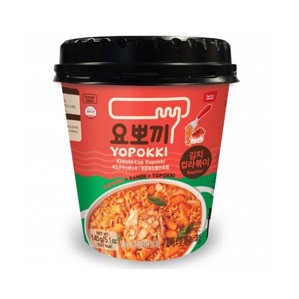 A bold and savory Korean street-food classic with authentic kimchi flavor Yopokki Rapokki Kimchi Cup combines chewy rice cakes and springy noodles in a spicy, tangy kimchi-style sauce for a satisfying and comforting meal.